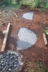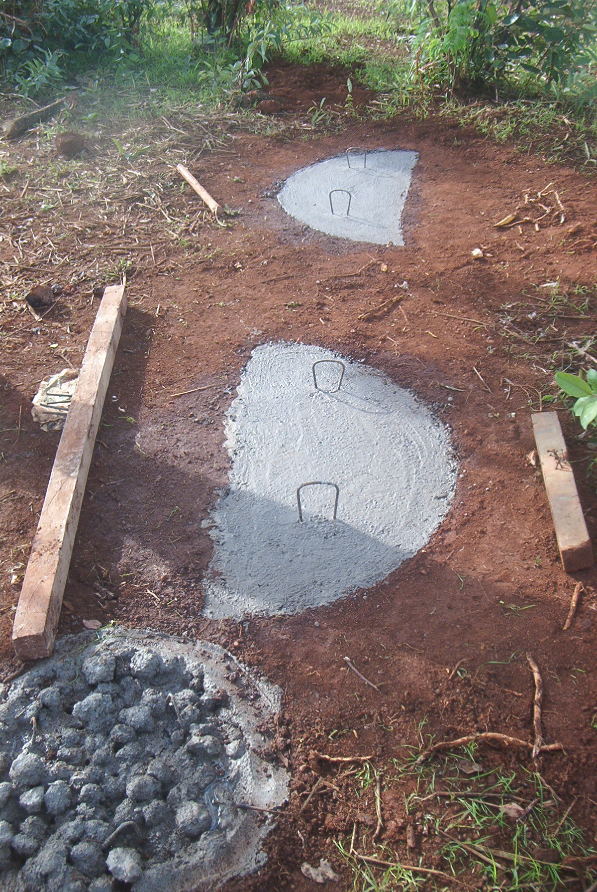 Creating the support base for the pump The pipes for the rotating rope are aligned The form is completed and concrete added The completed work is inspected. Success! |