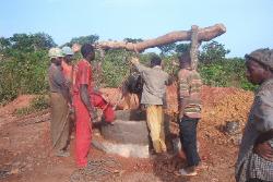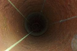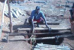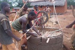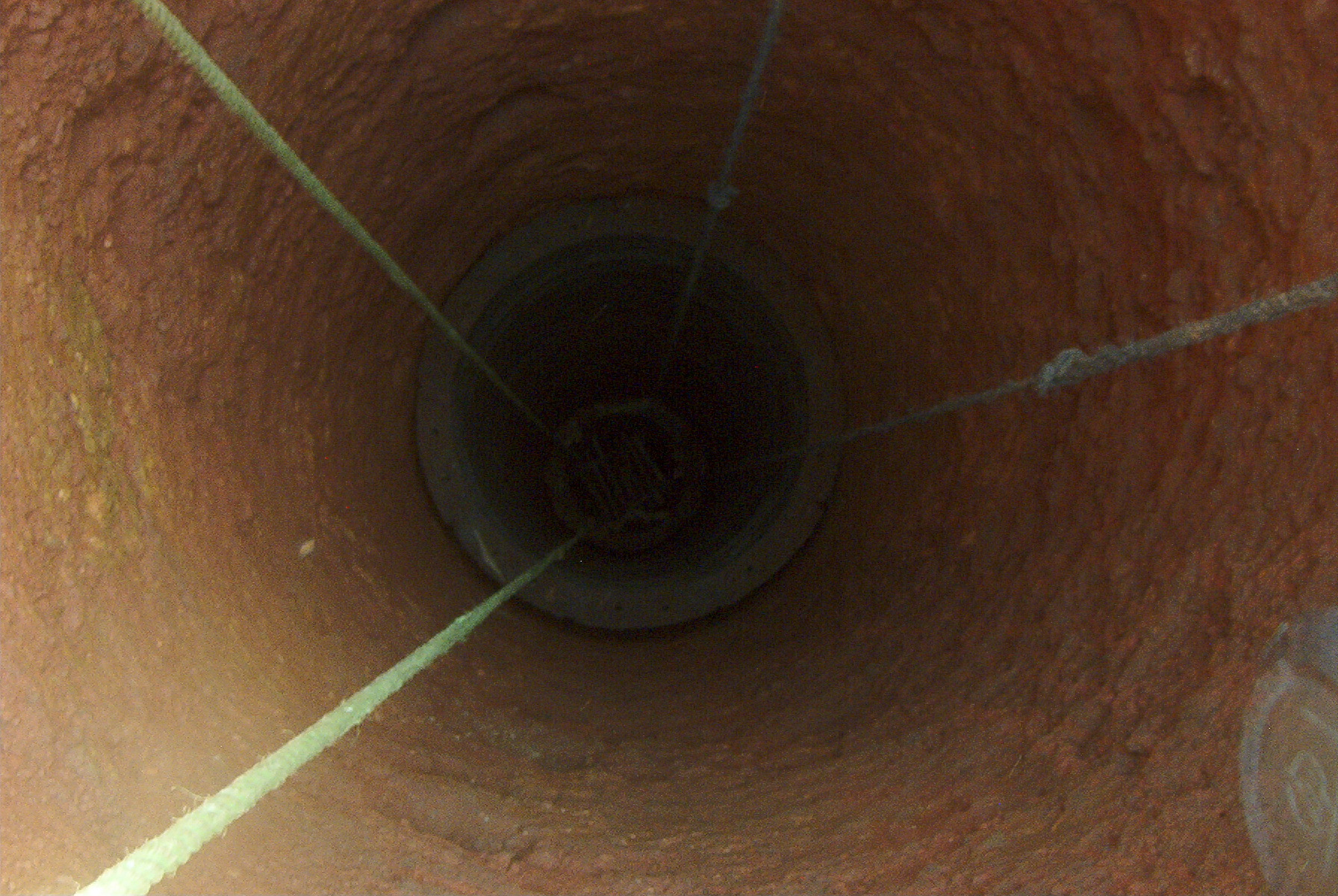 And the work begins! Scaffolding is built to support the men The walls are built up from the bottom of the well This is the porous "base plug" |