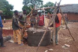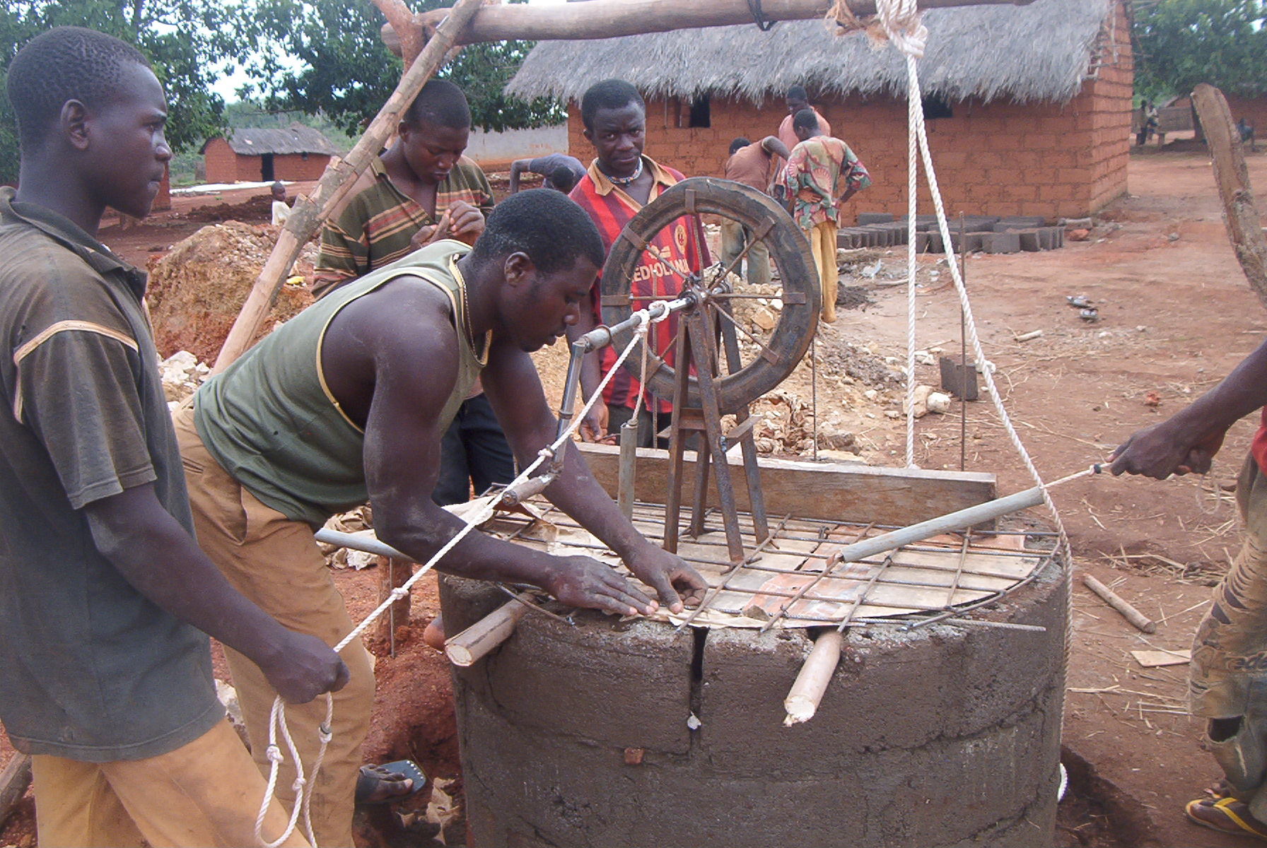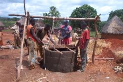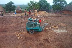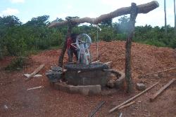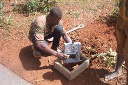 | Using a Cameroonian-made "washer pump" and smaller diameter forms for the well casing, the water team was able to complete two wells in the time it usually takes to install one. By replacing the costly foot pump with a locally-available one, the cost of the well installation was reduced by nearly half. |