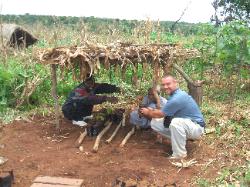 This is one of the locally-made bridges we had Another nursery is built using corn stalks for We also planted some avocado seeds here The Moringa germinates well and is very the pleasure of crossing with the truck - we the roof drought-resistant, ideal for climates with a nearly lost the truck in the river! pronounced dry season |